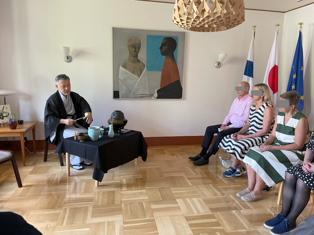 2024.06.11 フィンランド大使館「文化交流茶席」 2024年6月11日 最終更新日時 : 2025年9月27日 佐藤 義勝 フィンランドと日本の文化交流のための茶席を設けさせていただきました。 駐日外交官、大使館職員のみなさまに抹茶の楽しみ方をお話しました。 ご自分で抹茶を点てて飲む外交官からは道具や技術の質問が寄せられました。