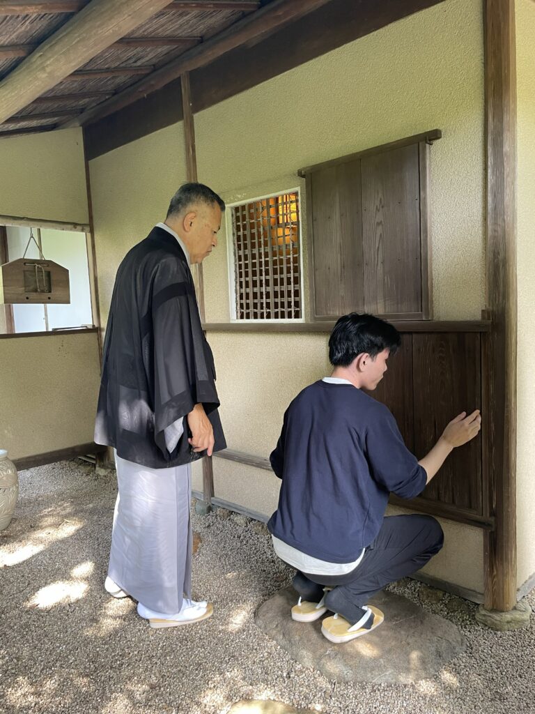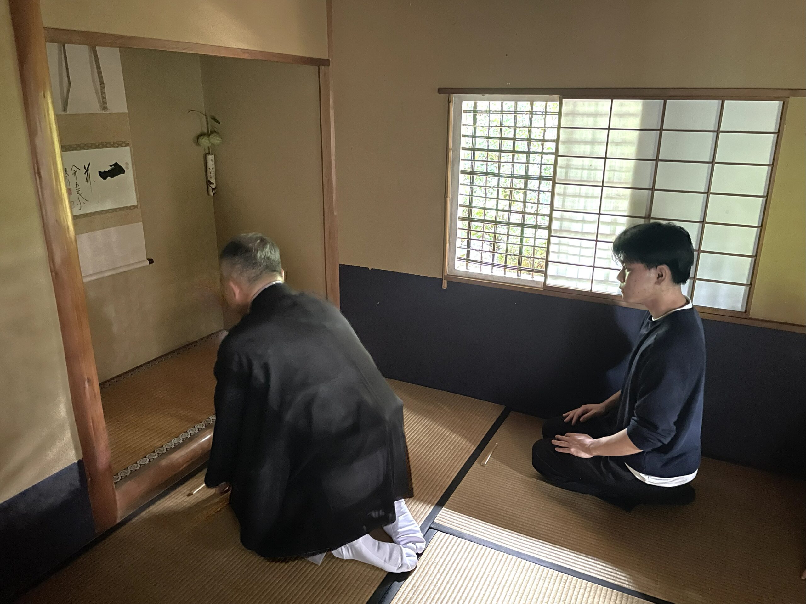 2025.10.05 宗泉寺 2025年11月11日 最終更新日時 : 2025年11月11日 佐藤 義勝 日本外国語専門学校の生徒2名が茶道体験に訪れてくれました。 二人とも本格的な茶室は初めてとのことで、蹲から躙口、席入り、点心と薄茶を楽しまれたようです。